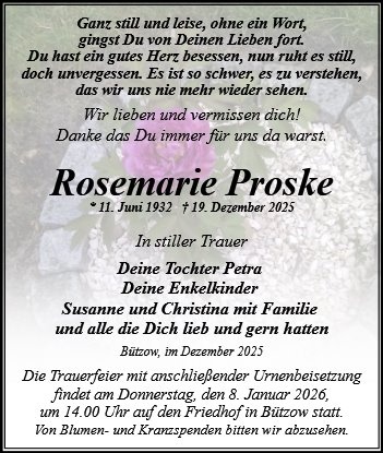gestorben am 19. Dezember 2025 in >Bützow<